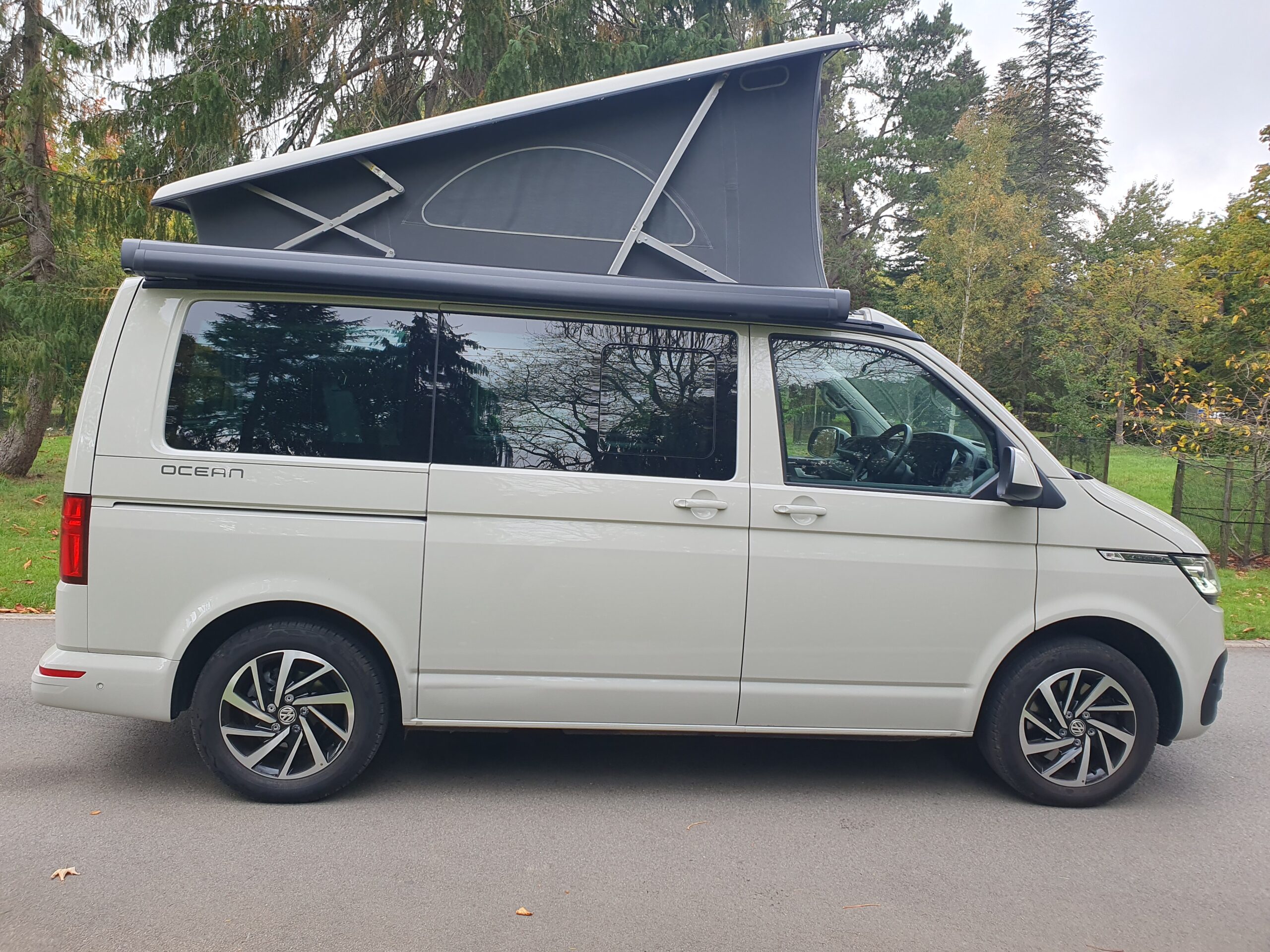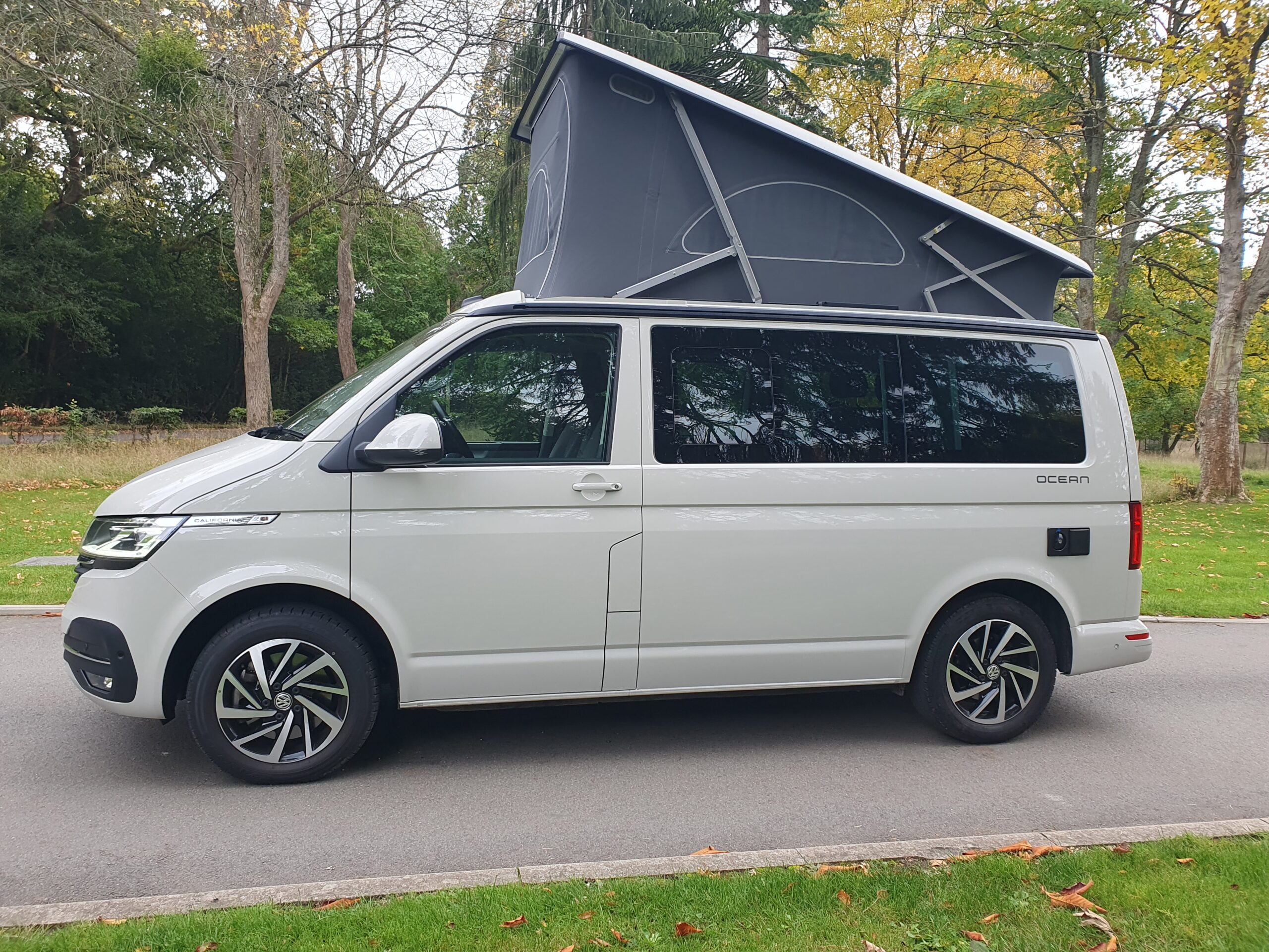This 2024 Volkswagen California TDI Ocean presents a superb opportunity to own a virtually new campervan, boasting the latest Euro 6 emissions standards and a powerful 2.0 litre diesel engine. As a top tier Ocean trim, this model is equipped with a suite of advanced features designed for comfort and convenience. These include automatic headlight activation with a manual coming home and automatic leaving function, ensuring you always have optimal visibility. For effortless parking, it features front and rear parking sensors complemented by a park assist system and a rear view camera.