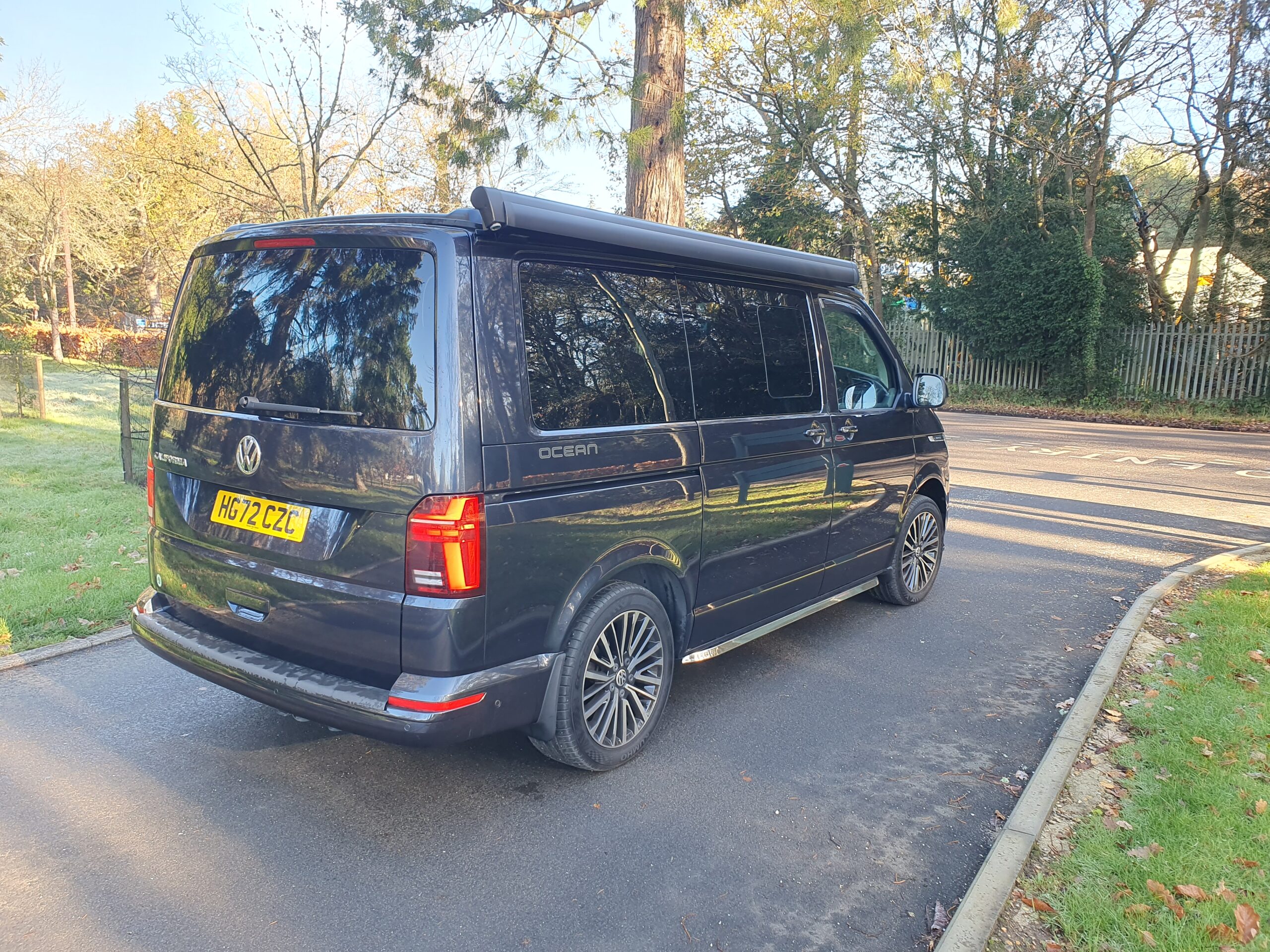 This 2024 Volkswagen California TDI Ocean presents a superb opportunity to own a virtually new campervan, boasting the latest Euro 6 emissions standards and a powerful 2.0 litre diesel engine. As a top tier Ocean trim, this model is equipped with a suite of advanced features designed for comfort and convenience. These include automatic headlight activation with a manual coming home and automatic leaving function, ensuring you always have optimal visibility. For effortless parking, it features front and rear parking sensors complemented by a park assist system and a rear view camera.