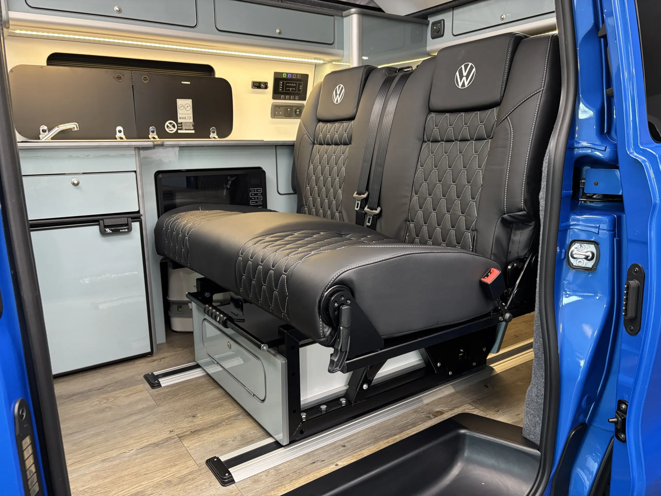 All vans are professionally converted into high-quality campervans. Your purchase includes a 3-year installation warranty (VW T7 conversions only) and a habitation certificate. All conversions are insurer-approved.